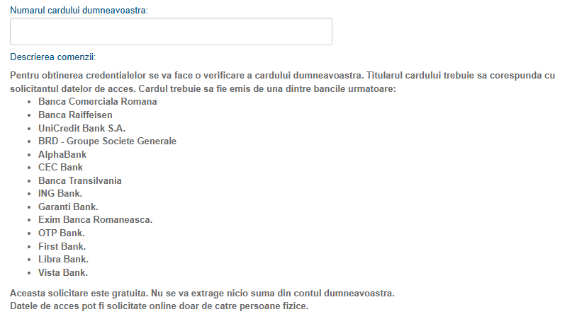 Pentru verificarea identității, unul din pași este validarea cu un card emis pe numele tău, la una din băncile din listă. Nu sunt valabile cardurile Revolut, ori cele emise pe numele PFA.