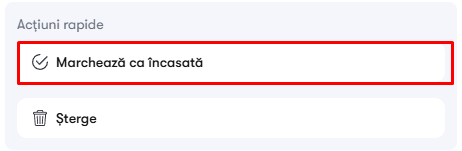 Dă click pe factura neîncasată și apasă pe opțiunea Marchează ca încasată.Alege data încasării, apoi apasă pe Am încasat.
