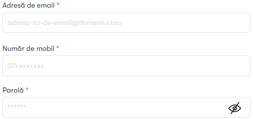 Adresa de e-mail: Folosește o adresă pe care o verifici constant, deoarece pe această adresă vei primi toate comunicările de la noi.